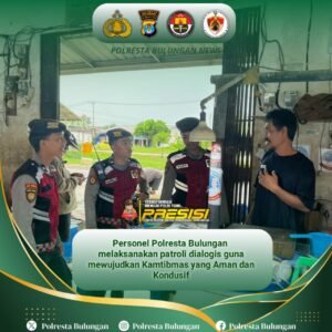 Dalam patroli dialogis, personel Polresta Bulungan juga berinteraksi langsung dengan warga untuk mendengar aspirasi dan keluhan mereka. “Melalui patroli ini, kami ingin membangun komunikasi yang baik dengan masyarakat. Dengan begitu, mereka tidak hanya merasa aman, tetapi juga merasa didengar oleh aparat kepolisian,” tambah Kombes Pol Rofikoh.